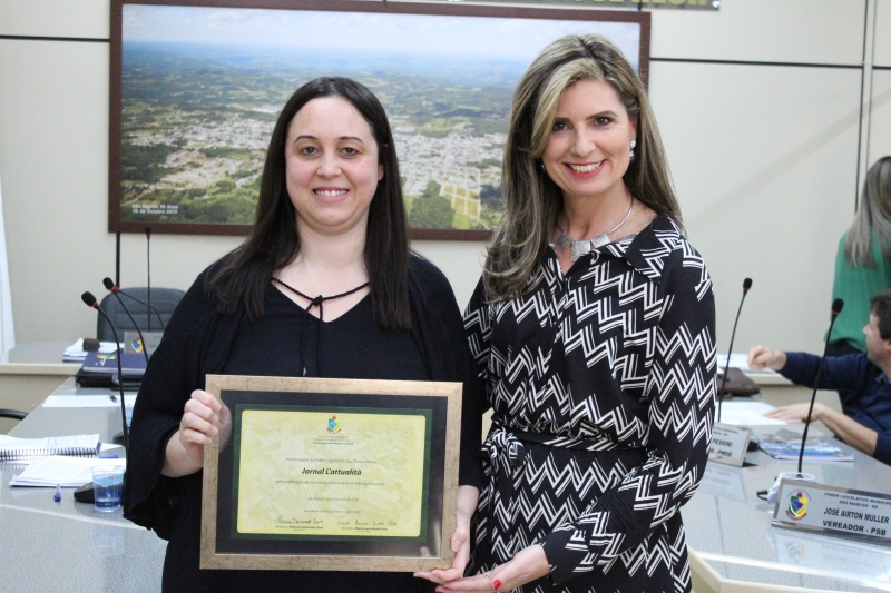 A Câmara de Vereadores de São Marcos realizou Ato Solene em homenagem às 500 edições impressas do Jornal L’Attualità, nesta segunda-feira, dia 19 de novembro, a partir das 18 horas. Sob direção da jornalista Roseméri Regina Drago, o jornal é distribuído quinzenalmente, aos sábados, e no último dia 22 de setembro publicou sua edição de número 500. Passaram-se 21 anos de circulação ininterrupta desde a sua primeira publicação impressa, em 11 de setembro de 1997. “Acho importante, muito mais que a homenagem, que considero justa em razão de nosso trabalho e dedicação diária aos temas que interessam a comunidade são-marquense, e principalmente diante de nossa responsabilidade em representar todo o município, mas mais importante que a homenagem é deixar registrada de forma oficial a história da imprensa escrita em São Marcos”, salientou Roseméri Drago, durante o seu pronunciamento no Ato Solene. A jornalista também destacou a principal visão da empresa que dirige há mais de duas décadas. “Ser o jornal impresso de maior circulação e interação com seus leitores nos municípios de São Marcos e Campestre da Serra, sendo referência, nos meios online e offline, pela produção de conteúdo jornalístico de qualidade, profundidade e pluralidade de opinião”, assinalou.