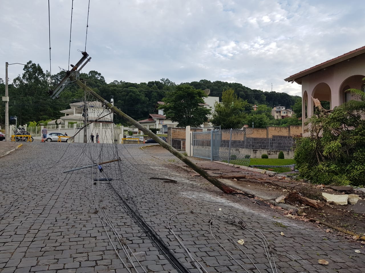 Na manhã desta quarta-feira (6), São Marcos acordou com imagens de um verdadeiro cenário de guerra na Rua Augusto Catafesta, onde o tombamento de um caminhão tanque destruiu poste da rede elétrica e avançou sobre residências, destruindo árvores e portões. O acidente ocorreu durante a noite desta terça-feira, 5 de março, por volta das 21h30, quando o caminhão Scania, que transportava suco de uva da vinícola Serra Gaúcha, trafegava pela via no sentido à Avenida Venâncio Aires, após cruzamento com a Avenida Carlos Gomes, e perdeu o controle, ao que tudo indica, por ter ficado sem freio. O veículo tombou e atingiu pelo menos duas casas, derrubando cercas, muro, árvores e postes de energia elétrica. “Eu estava assistindo à novela e no intervalo fui no banheiro. Nisso eu ouvi aquele estouro, faltou luz e só via fogo e raio”, relata a moradora de uma das casas atingidas, Iraci Catafesta, de 74 anos.