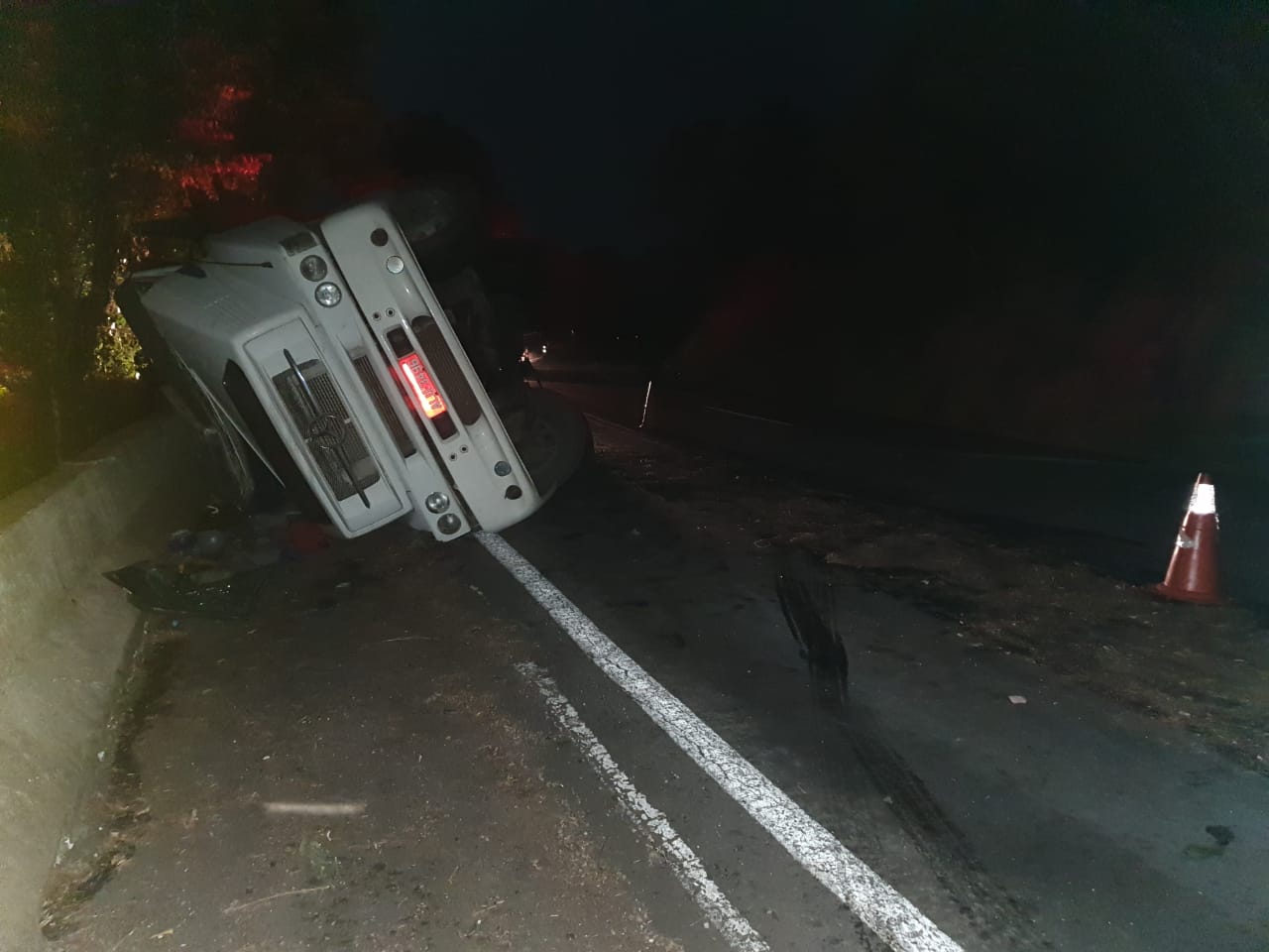 Na noite desta terça-feira, dia 10 de março, por volta de 21h50, a Polícia Rodoviária Federal (PRF) registrou o tombamento de uma carreta bitrem na BR 116, km 100. O veículo, um caminhão Mercedes Benz com placas de Mafra (SC), tombou na pista sentido São Marcos/ Vacaria, e era conduzido por um homem de 45 anos. O motorista sofreu lesões leves e foi conduzido pelo Samu ao Hospital São João Bosco. O caminhão levava uma carga de sacos de adubo (uréia), sendo que parte da carga ficou sob a pista e parte dela no leito da rodovia. Houve vazamento de óleo na pista, que foi contido pelo Corpo de Bombeiros de São Marcos com o uso de terra.