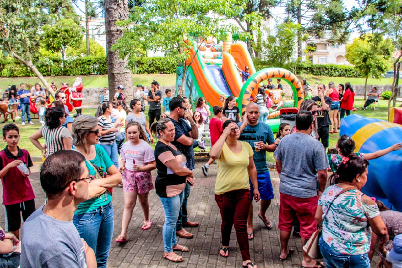 Neste domingo (9), o Rotary Clube de São Marcos promoveu o Natal das Crianças na Praça Dante Marcucci. O evento teve distribuição de lanches e doces para as crianças, que se divertiram com a Galinha Pintadinha, danças e música