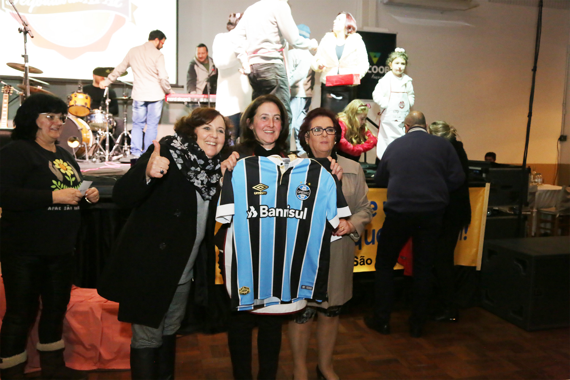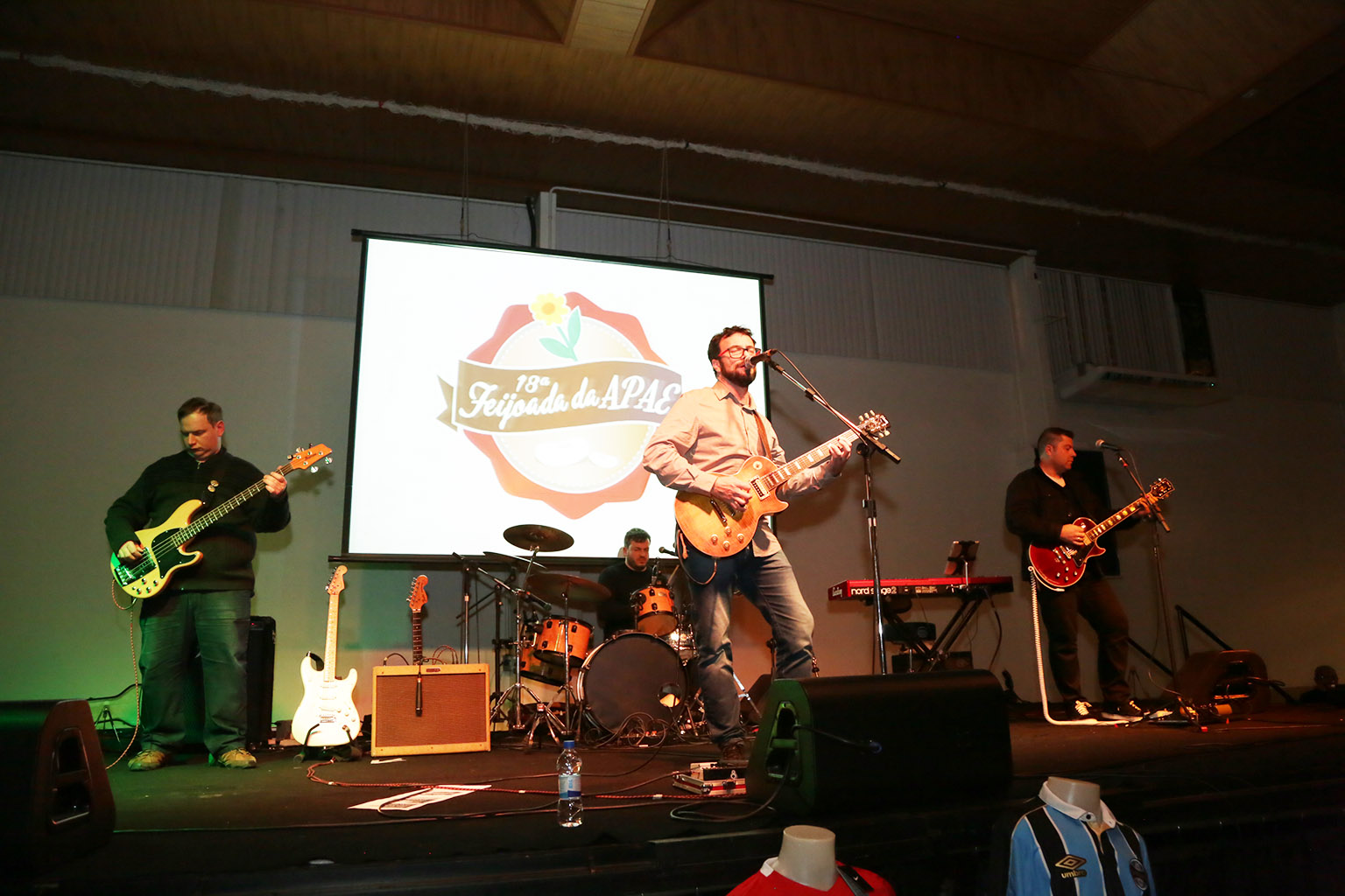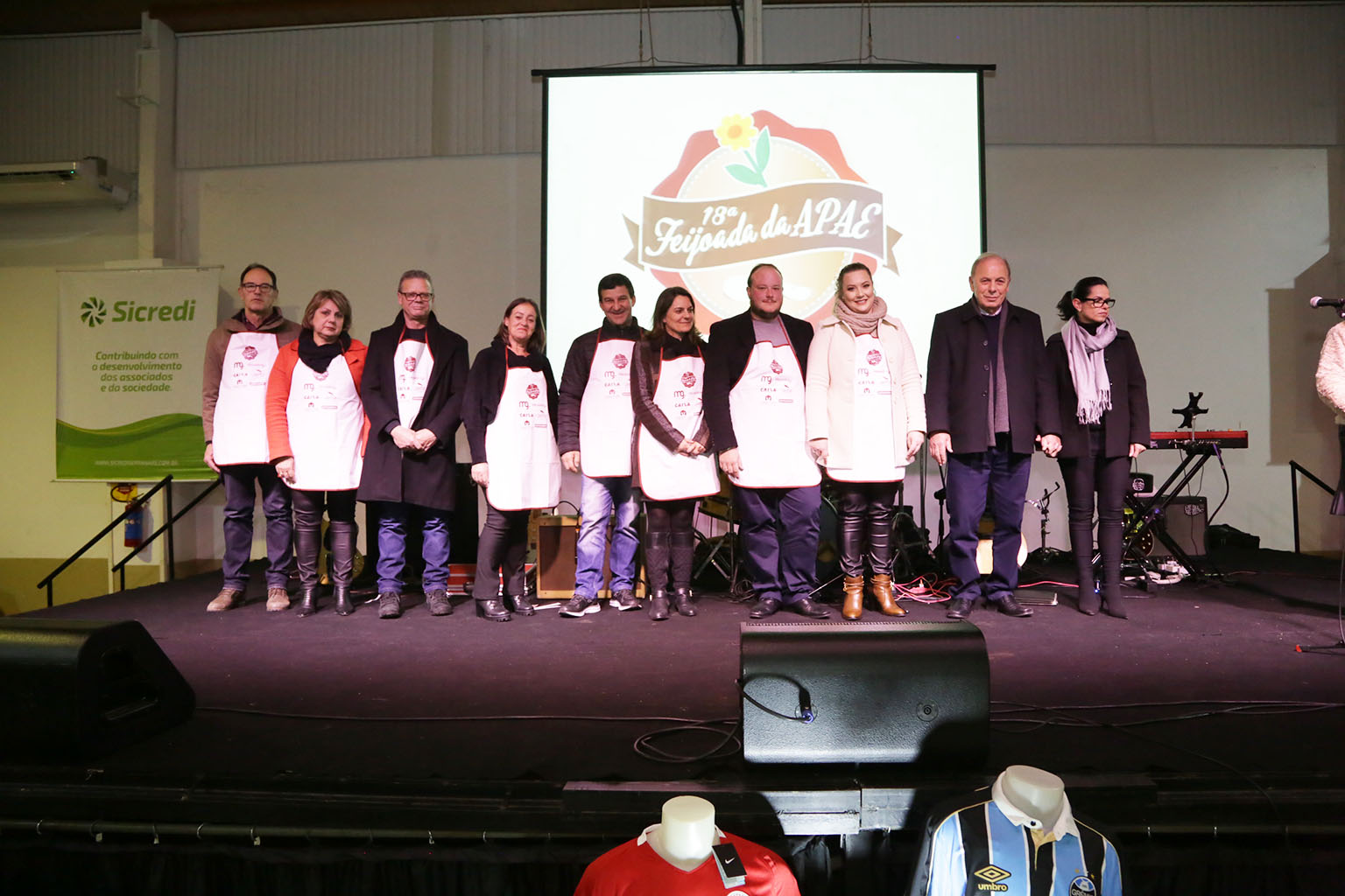 A recepção ao público da 18ª Feijoada da Apae ficou a cargo do músico Ricco Sirtoli, de Caxias do Sul. Ele apresentou canções inspiradas no pop rock, MPB e surf music. A famosa feijoada, acompanhada da sobremesa, foi preparada pelo chef Adriano Biasotto e equipe de voluntários. 80% da comida foi doada. Depois do jantar, aconteceu a apresentação dos alunos da Apae. Em seguida, houve sorteios de brindes, e das camisetas oficiais dos times. Marli Prandini ganhou a camiseta do Grêmio, José Eugênio Machado a camiseta do Inter e, Manoel Monteiro Jovanaz, a camiseta do Juventude. Quem encerrou a noite foi a banda Custom, também de Caxias do Sul. Os músicos apresentaram parte do seu repertório, composto por grandes clássicos do rock, como Beatles, Creedence, The Who e outras referências.